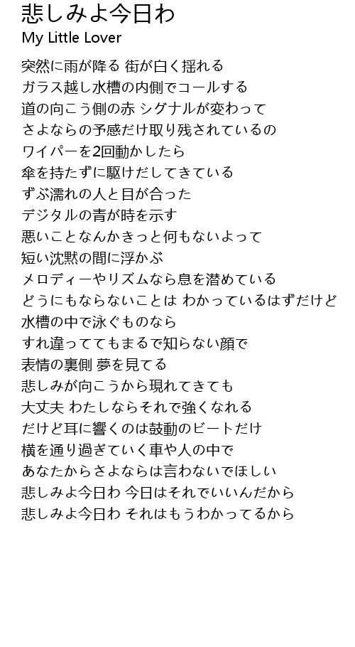 | 悲しみよ今日わ それはもうわかってるから |