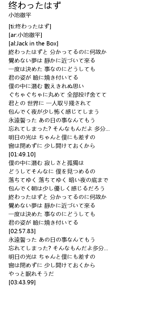 | [00:17.84] | 終わったはずと 分かってるのに何故か |