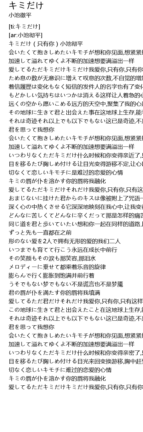 | [00:02.09] | キミだけ(只有你)小池彻平 |