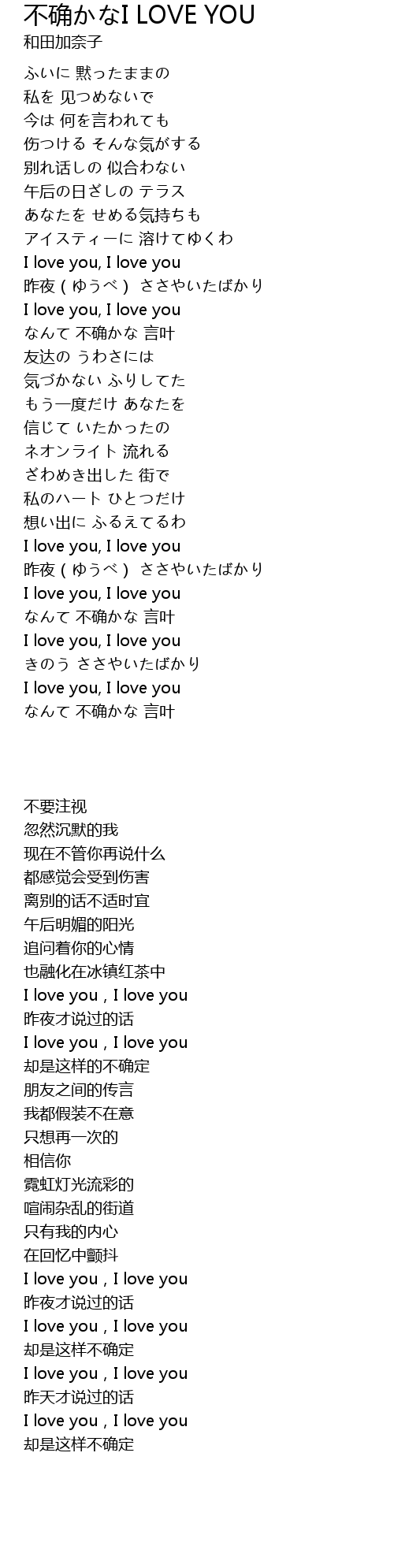 不确かなI LOVE YOU