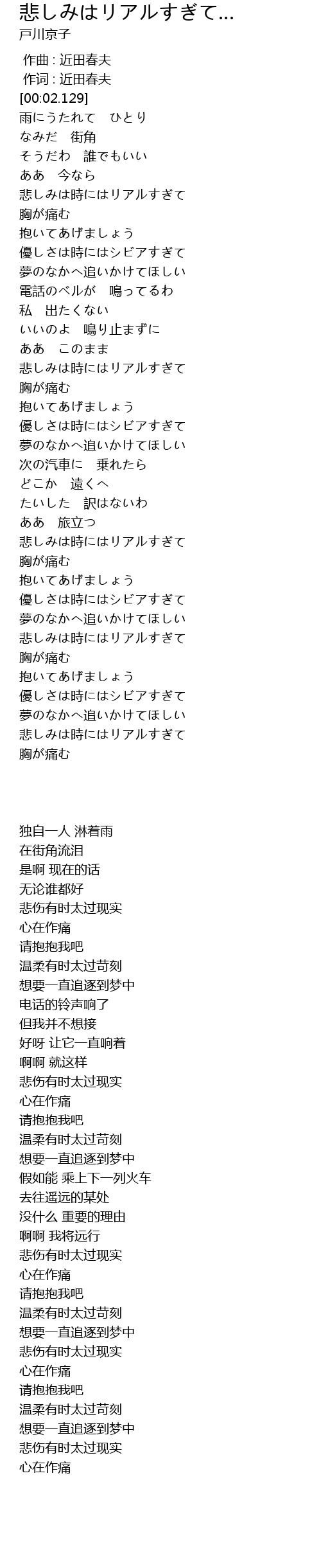 | [01:56.310] | 悲しみは時にはリアルすぎて |