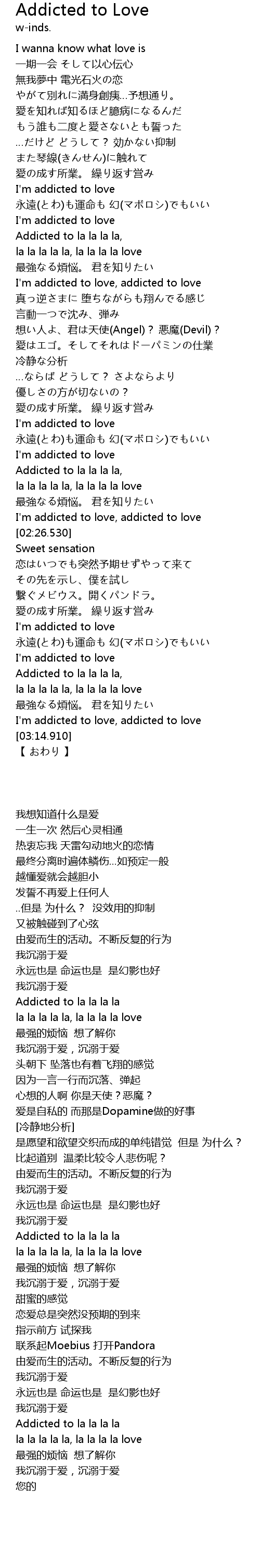 | [01:18.170] | I' m addicted to love, addicted to love |