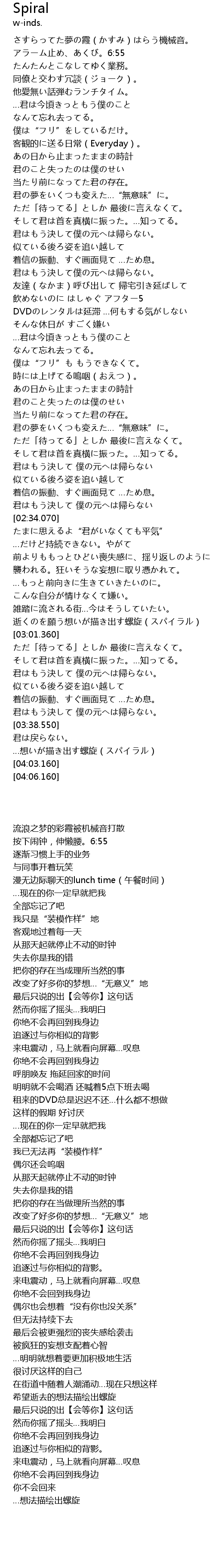 | [02:57.600] | 逝くのを願う想いが描き出す螺旋(スパイラル) |
