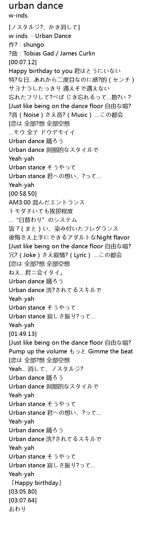| [02:32.36] | Urban dance 刹那的なスタイルで |