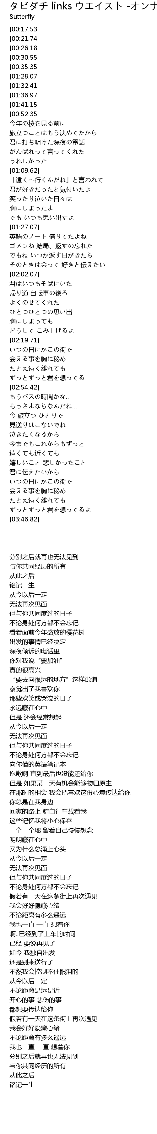 | [03:51.28][00:21.74] | 一緒に過ごした日々の事は |