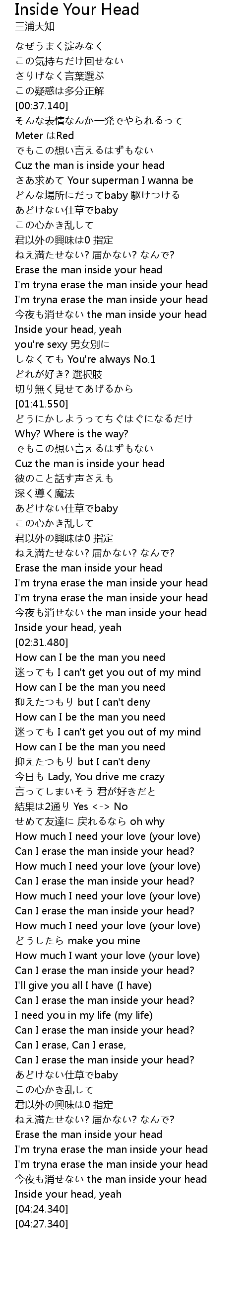 | [03:25.710] | Can I erase the man inside your head? |