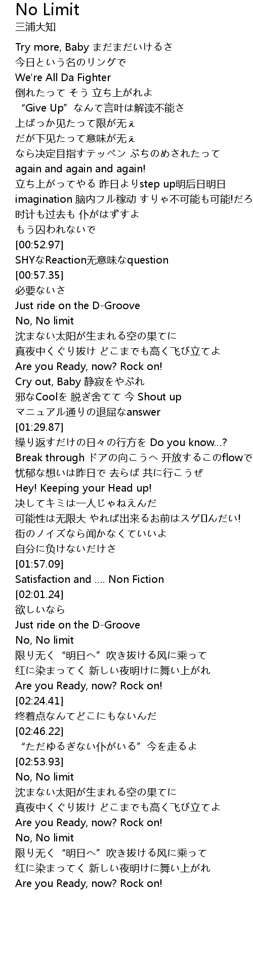 | [02:56.11] | No, No limit |