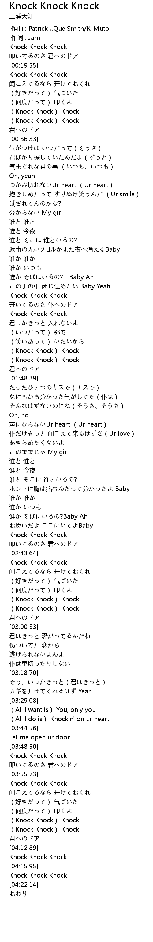 | [03:41.08] | All I do is Knockin' on ur heart |