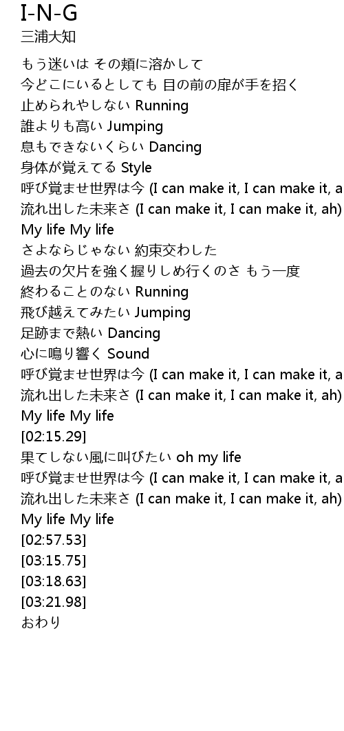 | [02:48.72] | 流れ出した未来さ (I can make it, I can make it, ah) |