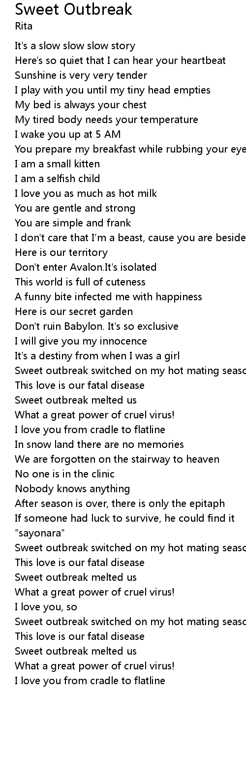 | [02:33.63] | Sweet outbreak switched on my hot mating season |