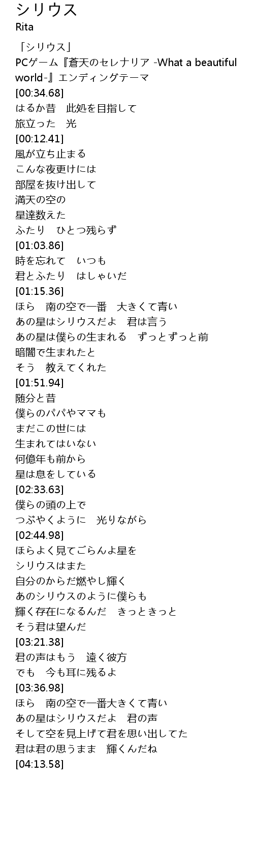 | [00:17.01] | 「シリウス」 |