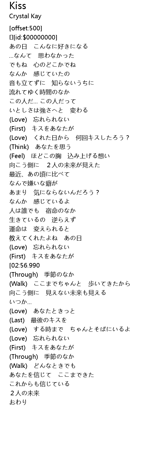 | [02:53.590] | (First) キスをあなたが |