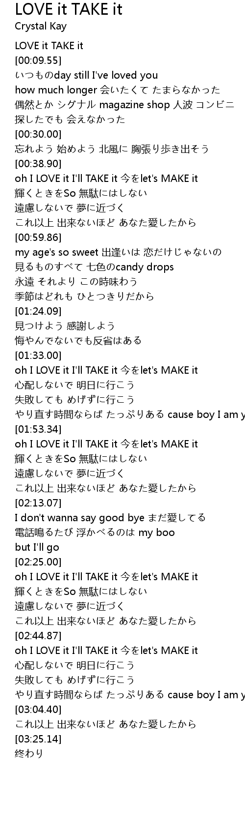 | [00:03.72] | LOVE it TAKE it |