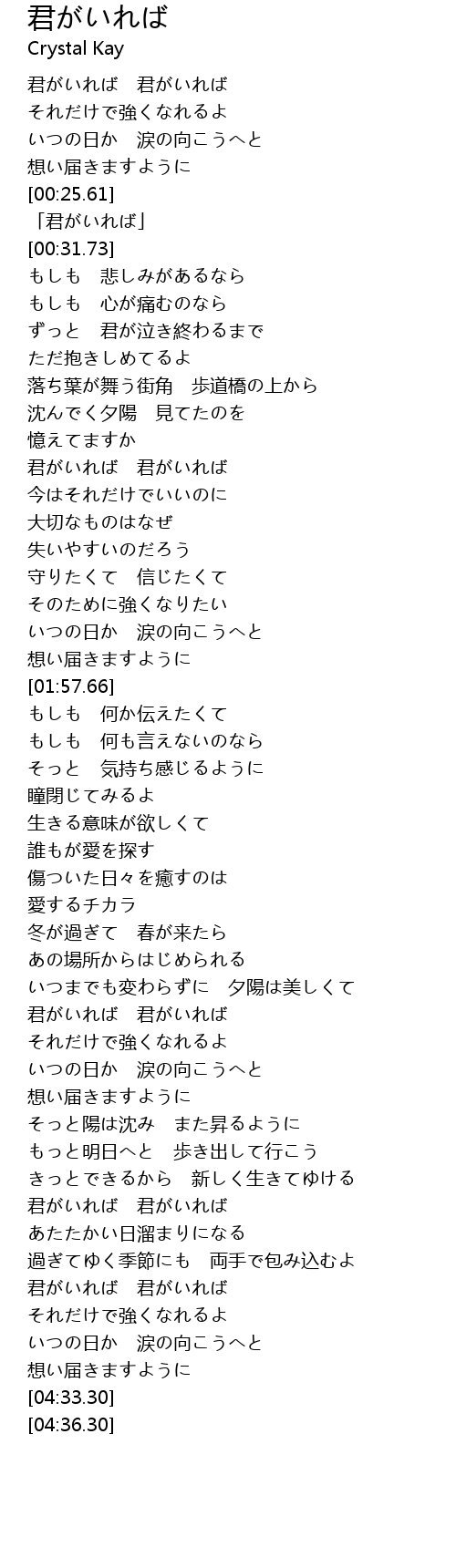 | [04:20.02] | いつの日か 涙の向こうへと |