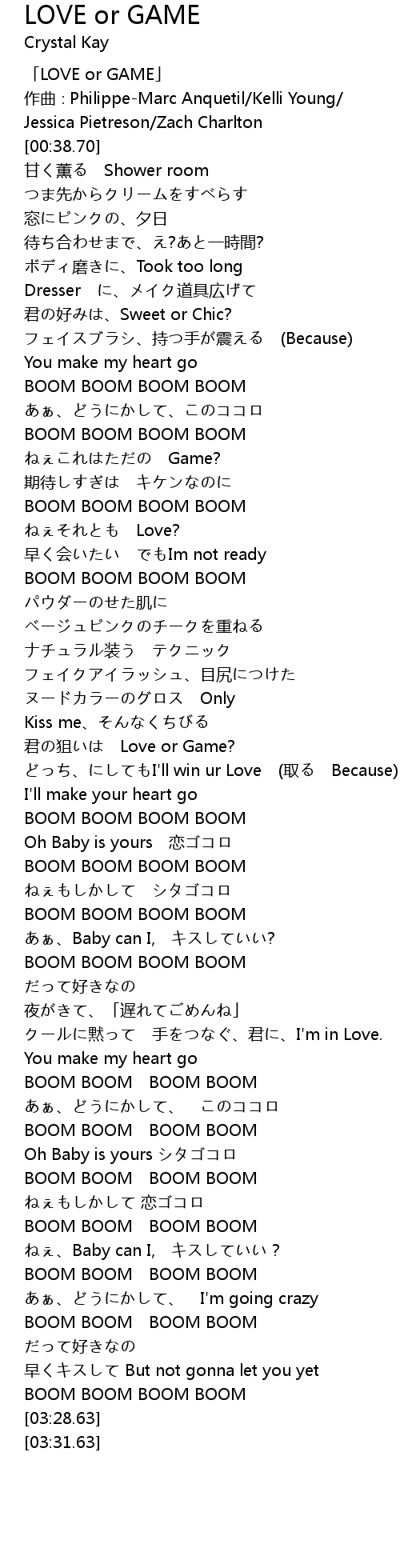 | [01:58.30] | どっち、にしてもI'll win ur Love (取る Because) |
