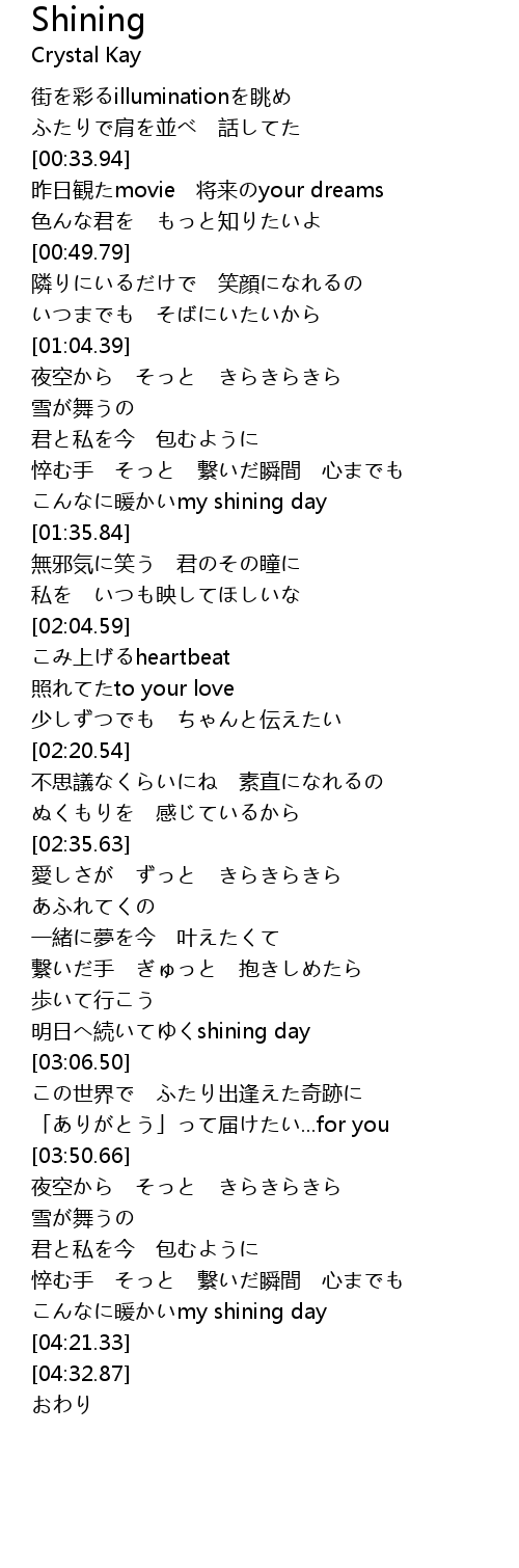 | [04:14.73] | nuan my shining day |