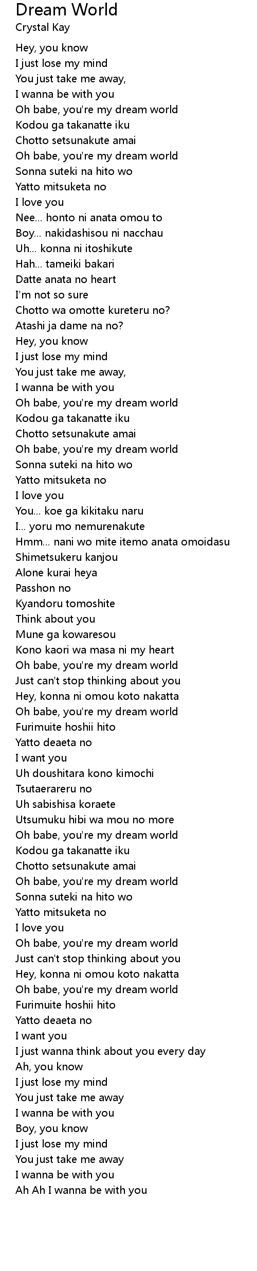 Oh babe, you're my dream world |
