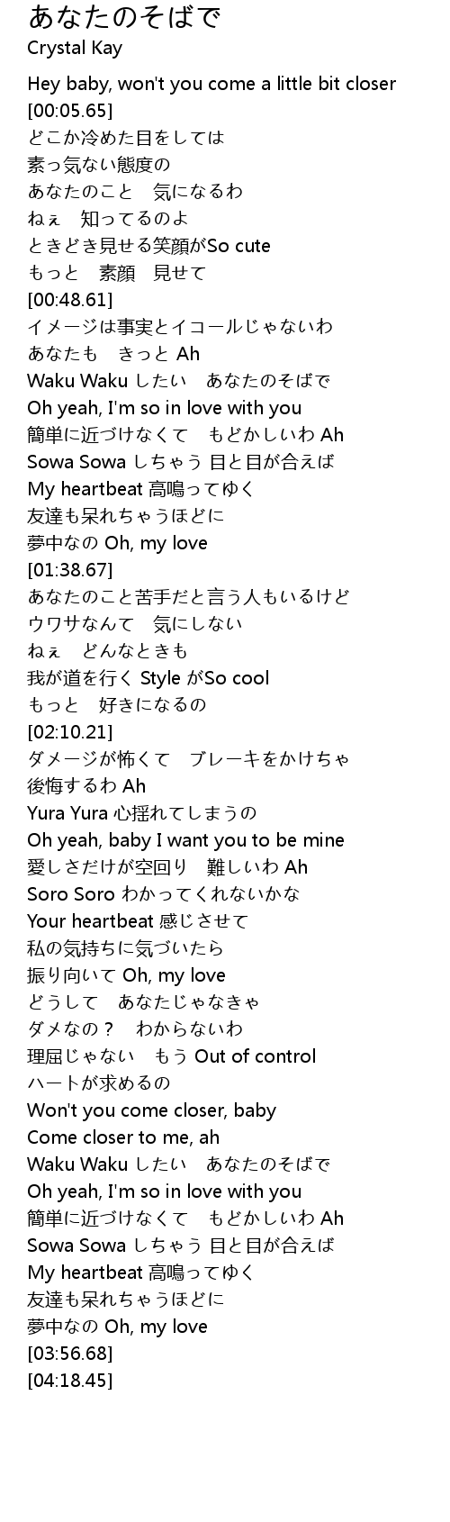 | [01:04.02] | Waku Waku したい あなたのそばで |