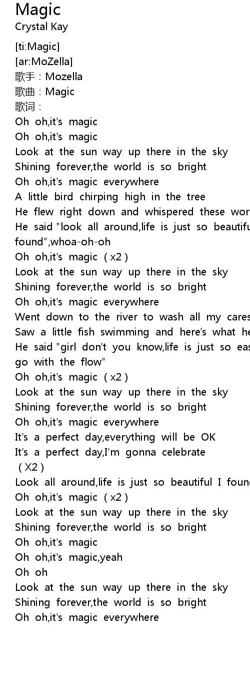| [01:35.585] | Oh oh,it's magic (x2) |