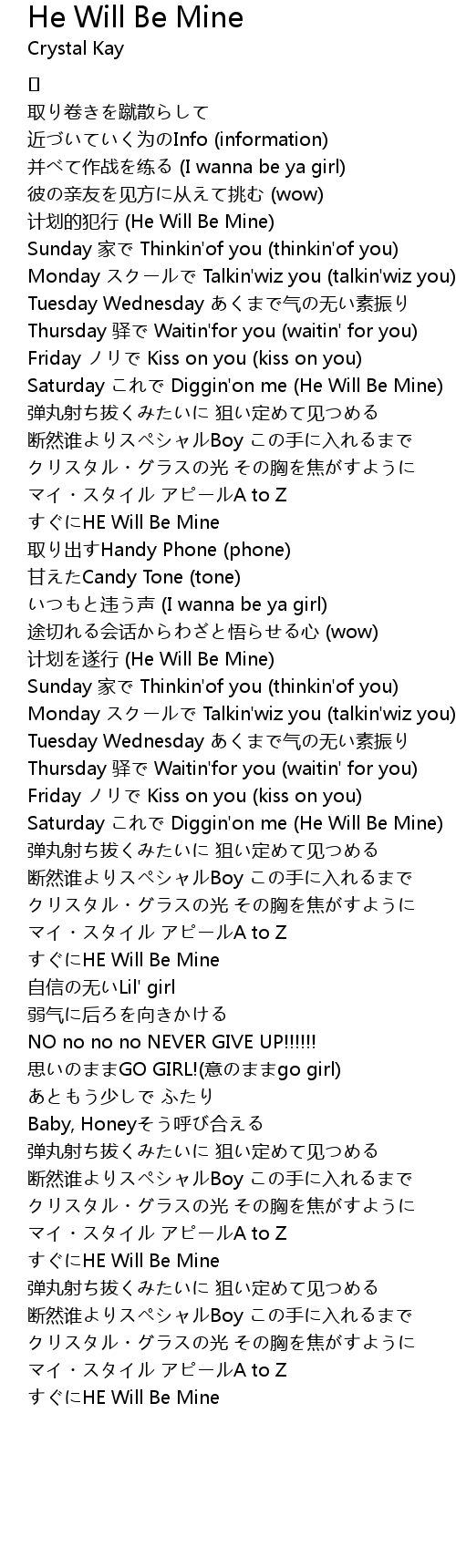 | すぐにHE Will Be Mine | |