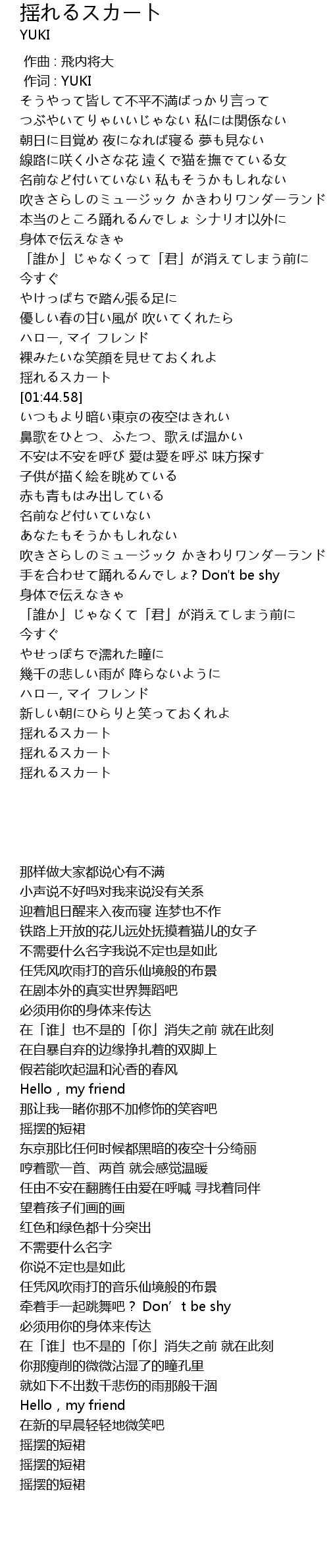 | [01:42.81] | 揺れるスカート |