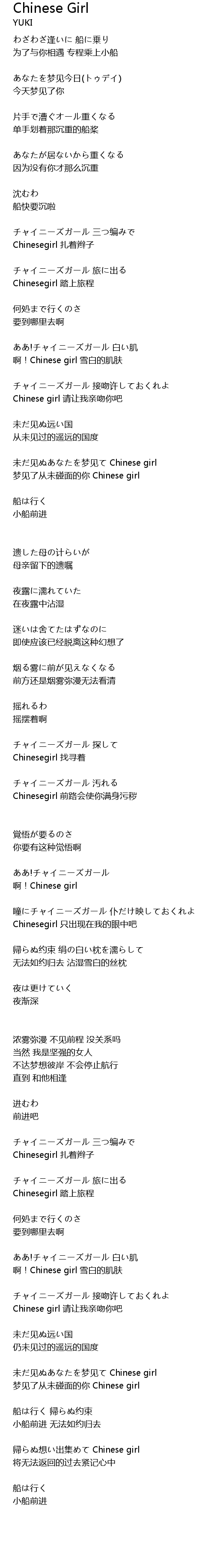 | 瞳にチャイニーズガール 仆だけ映しておくれよ | |