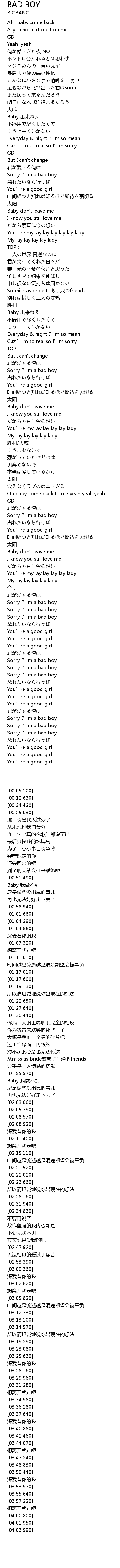 | [03:02.620] | Sorry I' m a bad boy |