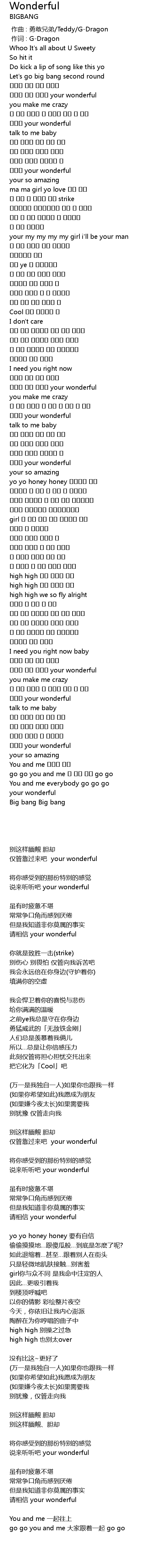 | [00:01.00] | 作词 : G-Dragon |