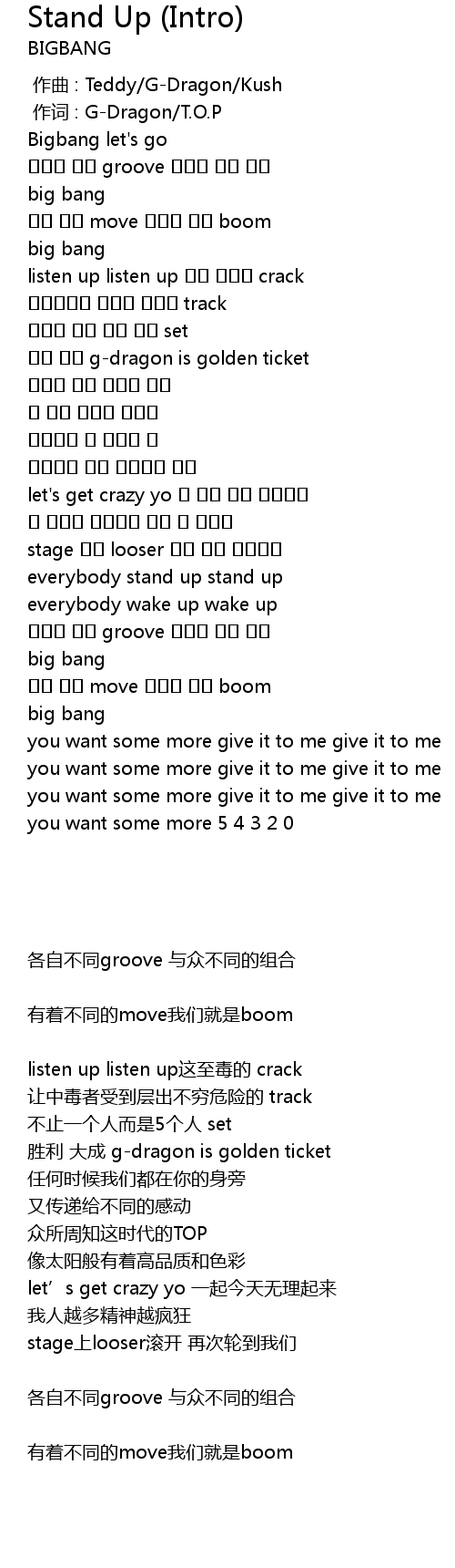 | [00:00.18] | 作词 : G-Dragon/T.O.P |