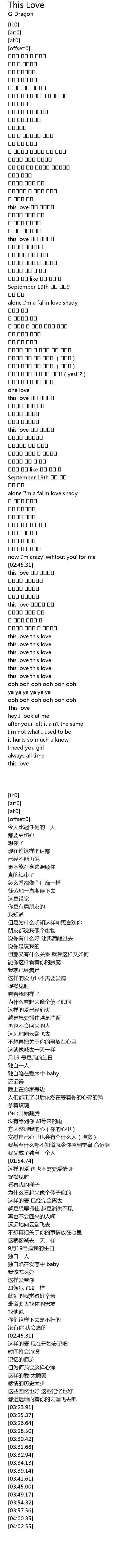 | [02:42.41] | now I'm crazy' wihtout you' for me |