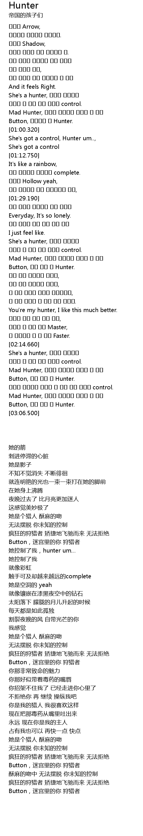 | [01:56.880] | Button, 미로 속의 너 Hunter. |