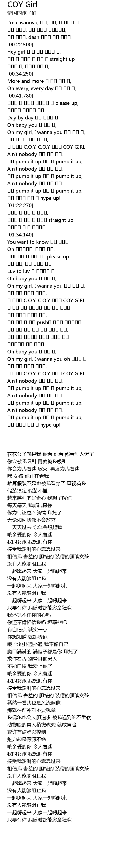 | [02:34.050] | C. O. Y. C. O. Y COY GIRL |