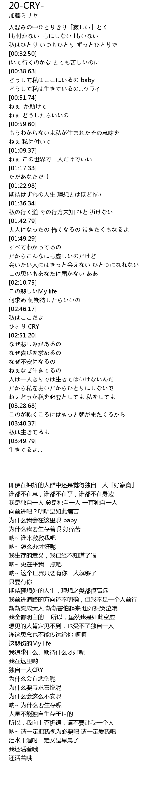 | [00:42.58] | どうして私は生きているの...ツライ |