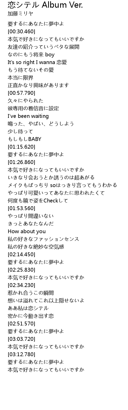 | [02:58.320] | 要するにあなたに夢中よ |