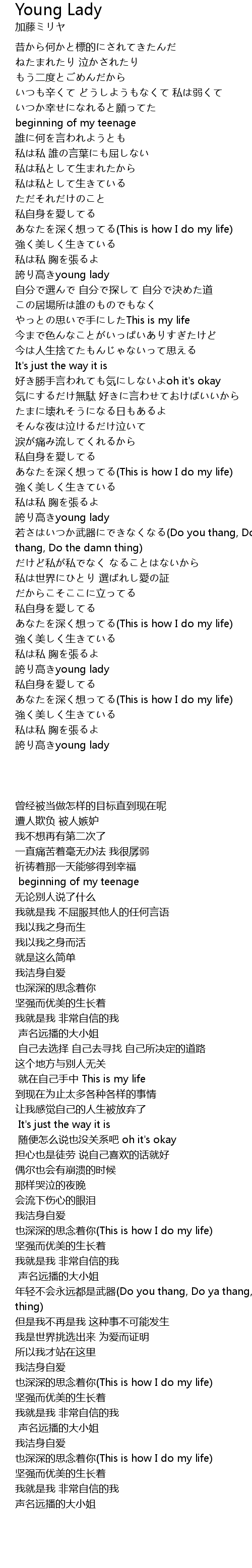 | [03:15.380] | 若さはいつか武器にできなくなる(Do you thang, Do ya thang, Do the damn thing) |