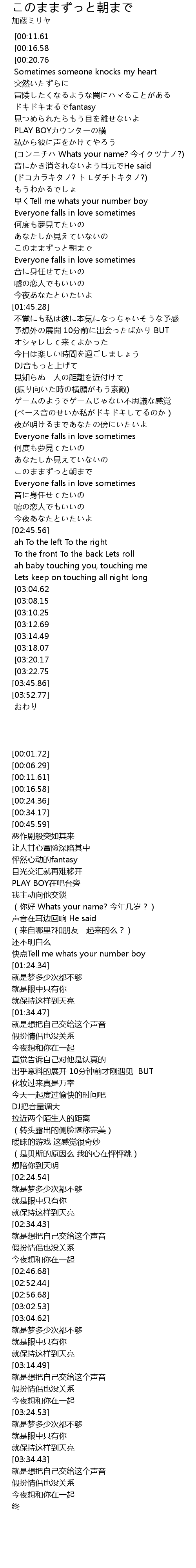 | [01:22.17] | zǎo Tell me whats your number boy |