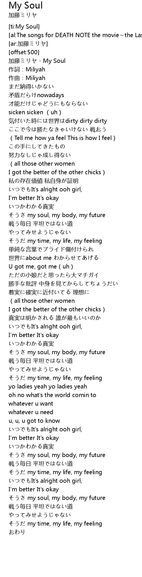 | [00:00.00] | 加藤ミリヤ - My Soul |