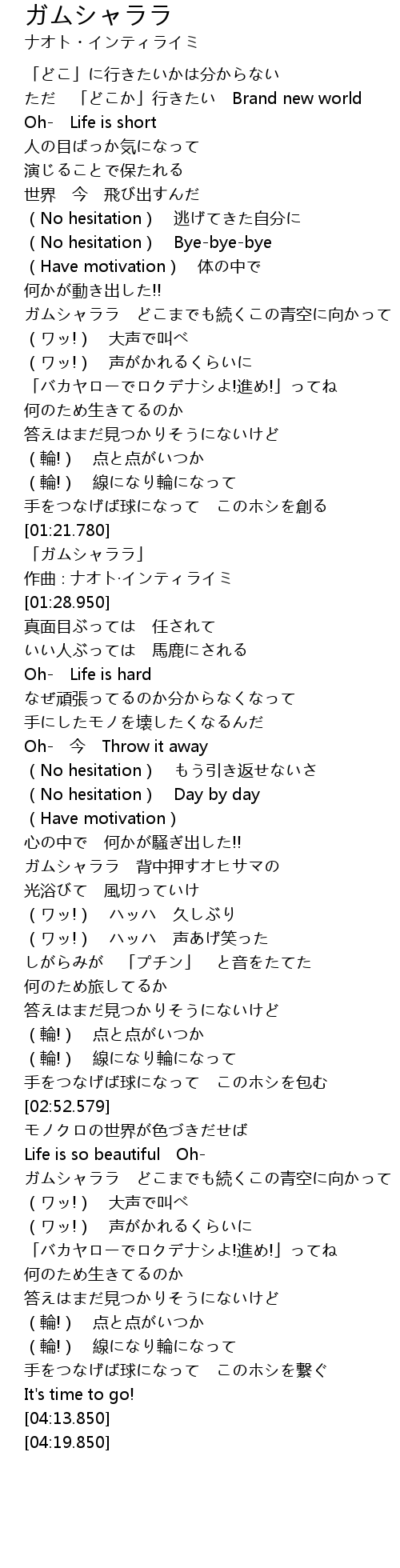 | [01:23.950] | 「ガムシャララ」 |