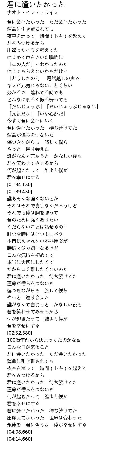 | [02:15.560] | 君に逢いたかった 待ち続けてた |