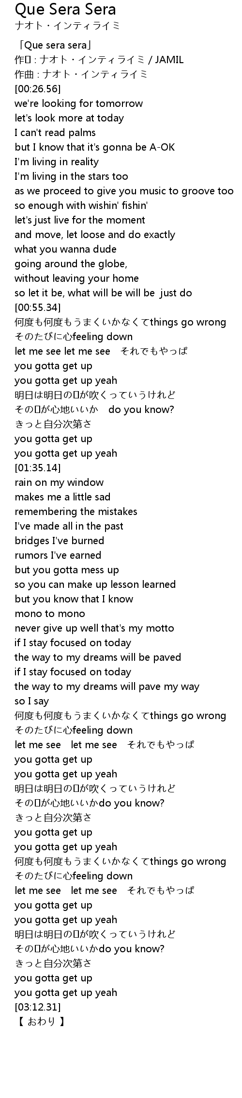 | [00:01.56] | 「Que sera sera」 |