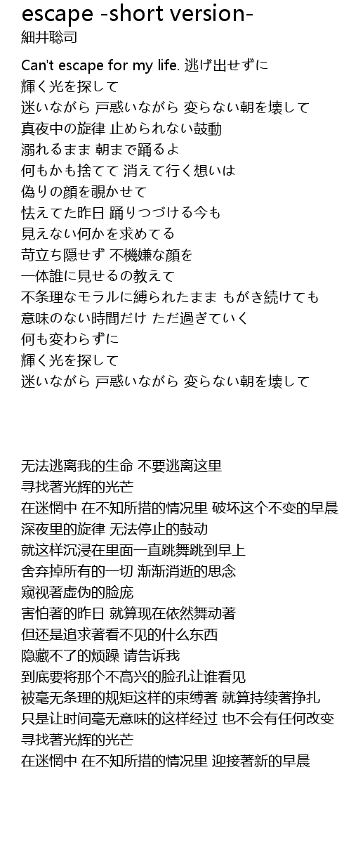 | [00:00.680] | Can't escape for my life. 逃げ出せずに |