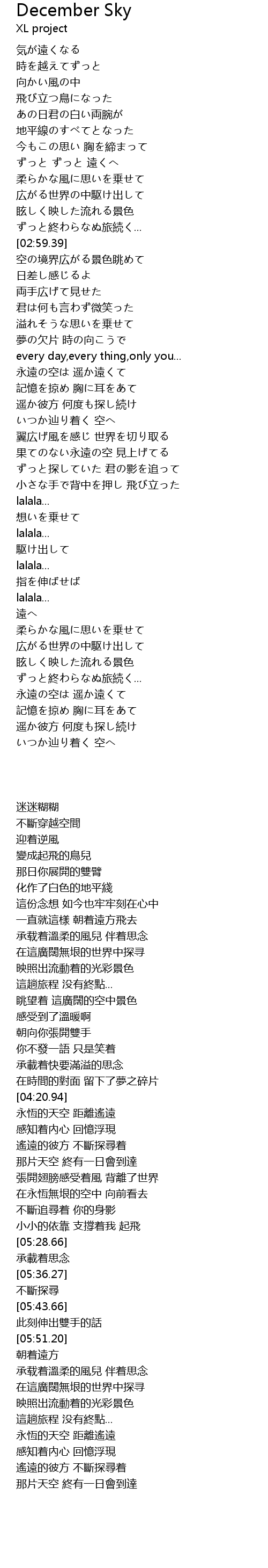 | [04:58.56] | 翼広げ風を感じ 世界を切り取る |