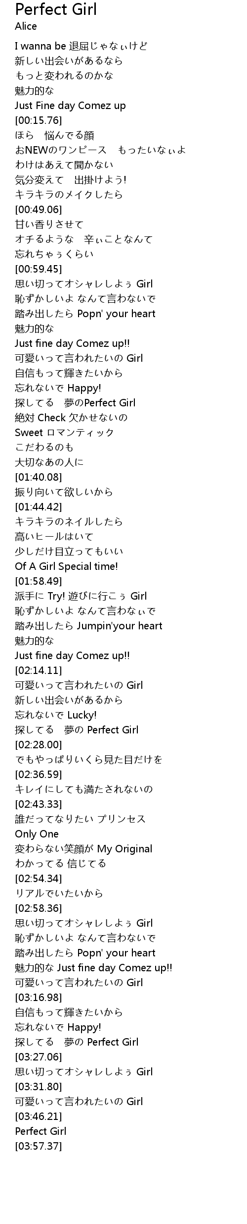| [02:24.95] | 探してる 夢の Perfect Girl |
