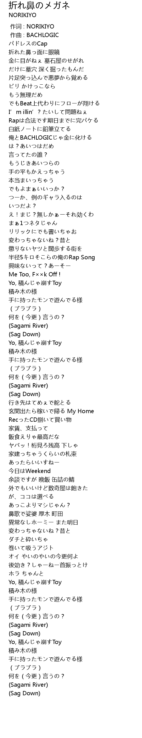 | [00:13:93] | 折れた鼻っ面に眼鏡 |