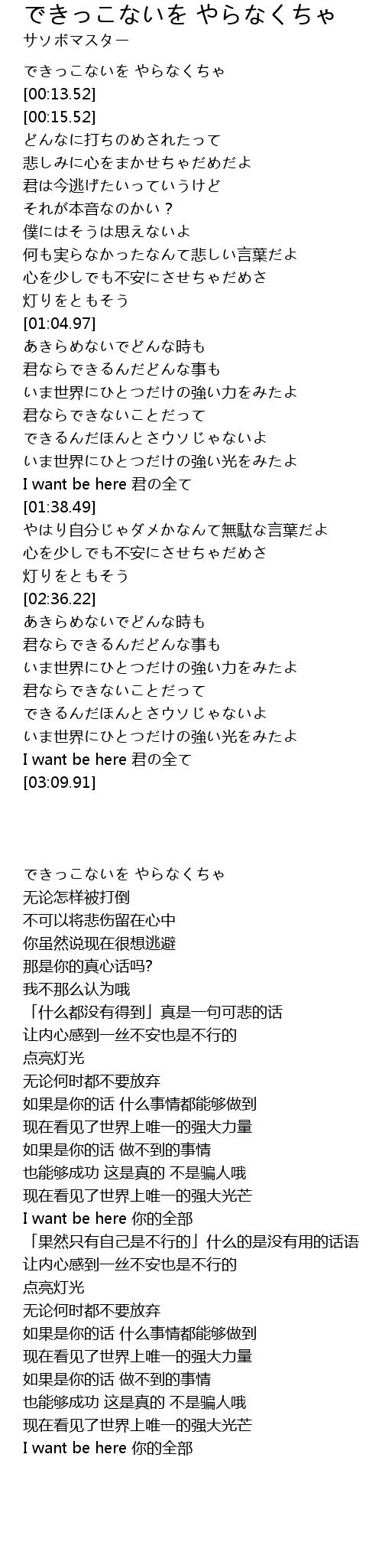 [03:05.58] I want be here 君の全て