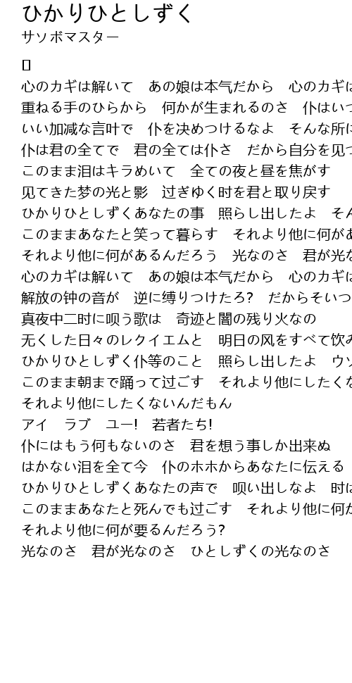 | ひかりひとしずくあなたの声で 呗い出しなよ 时は来たんだよ | |