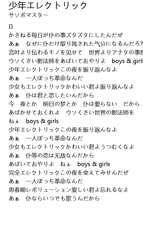 | Song | 少年エレクトリック |