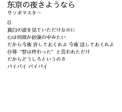| Song | 东京の夜さようなら |