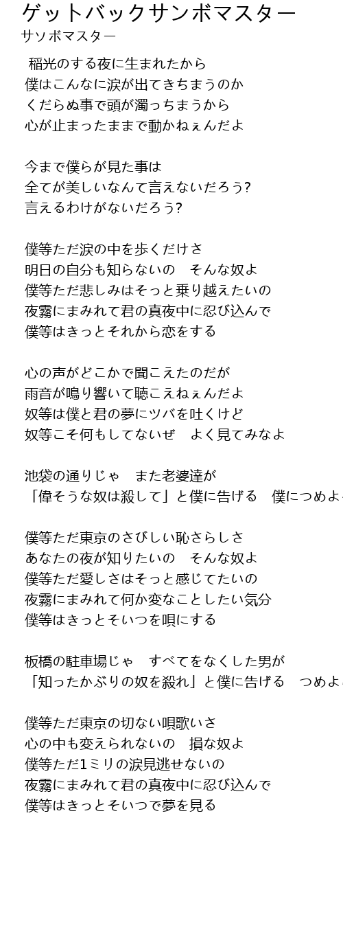 | Song | ゲットバックサンボマスター |