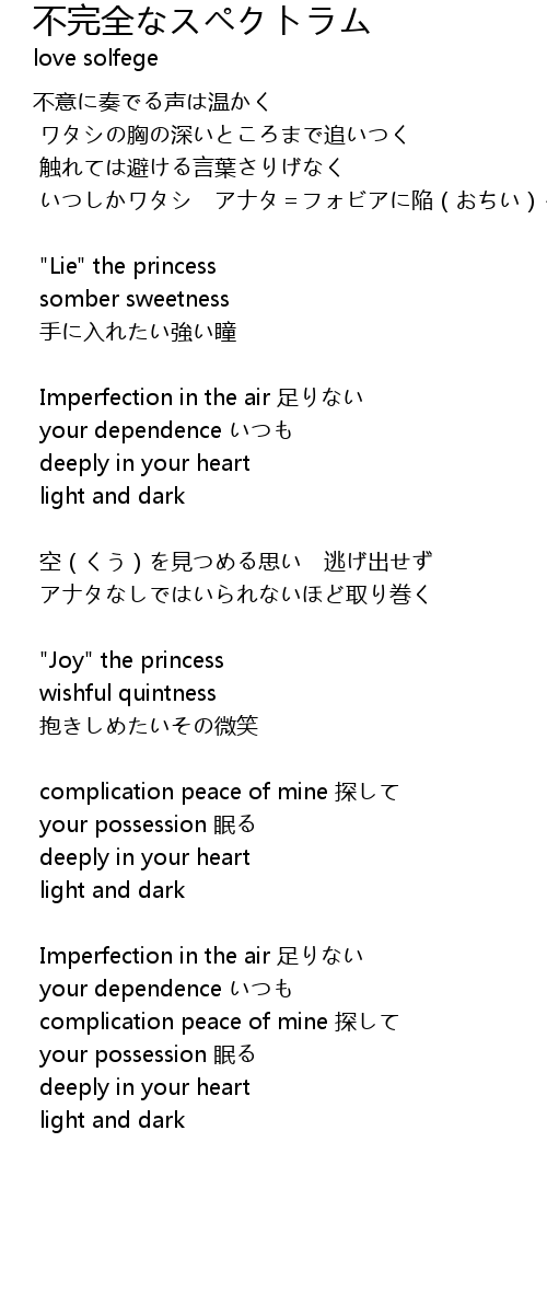 | Song | 不完全なスペクトラム |